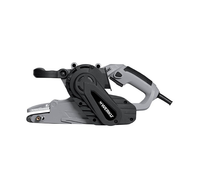 Lijadora de banda 76 mm. Protección antivibración y antideslizante. Regulador de tensión banda. Función lijadora banco. Selector rango de revoluciones. Potencia 1010 W. Velocidad 150-380 rpm. Con 6 velocidades. Viene preparada en su extremo de una placa de aluminio elevable en altura 90º mediante bisagra y así es apta para lijado de persianas....